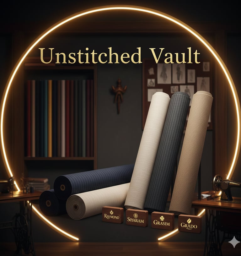 Craft a distinguished legacy with the world's finest textiles. Presenting an elite selection from Raymond, Siyaram, and Grasim